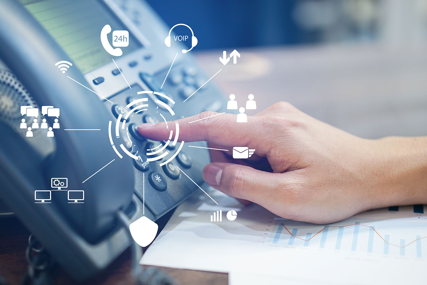 Le funzioni tradizionali di un centralino telefonico e gli strumenti di comunicazione digitale, come chat, videoconferenze e condivisione schermo, vengono integrati in un’unica piattaforma permettendo agli utenti di gestire chiamate, messaggi e riunioni da un’unica app su smartphone o PC (WebRTC).